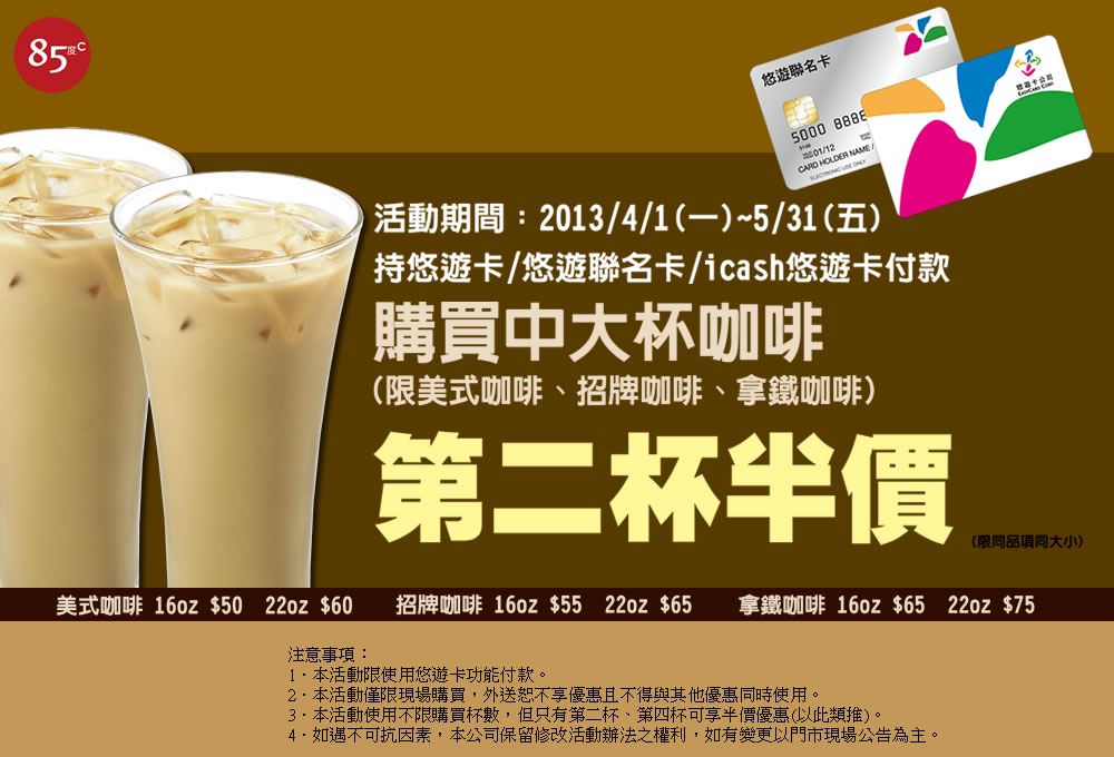 喜歡喝85度C咖啡的朋友不要錯過囉!
