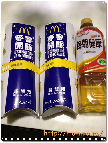 聽說麥當勞開始賣飯了,這二天看好多朋友都去當試吃員,立馬跟老爺去買二份回來嚐鮮。