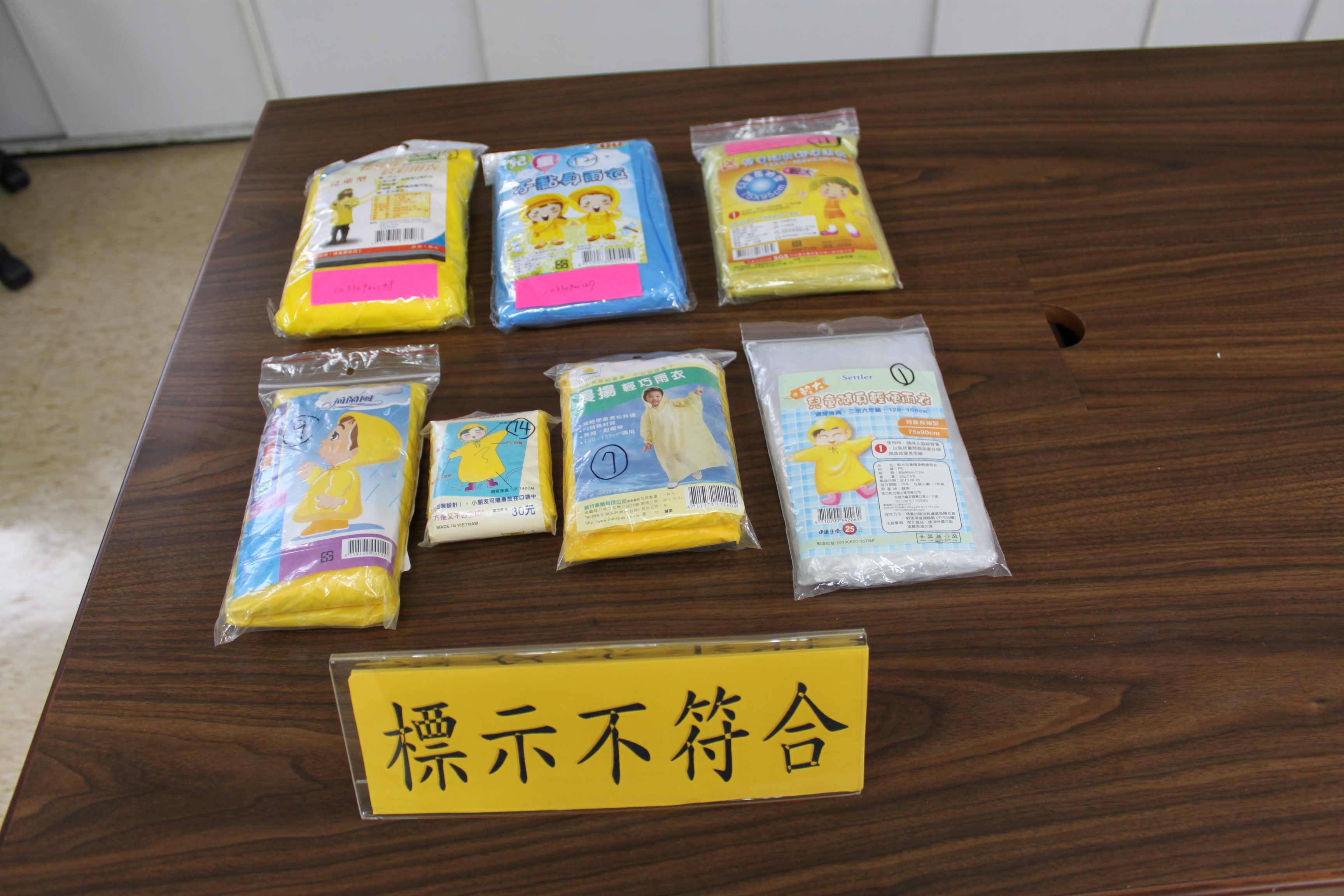 臺灣平均年降雨量約2000毫米,係屬高溫多雨的地區,雨衣和雨鞋為雨天兒童必備的雨具,使用時均有直接接觸皮膚之可能,因此材質的安全性對兒童有不可忽視之影響。經濟部標準檢驗局為瞭解市售「兒童雨衣」、「兒童雨鞋」之品質,確保兒童之健康安全,於量販店、大賣場及零售商店等通路隨機購買30件兒童雨衣(包含輕便型)、15件兒童雨鞋。檢測結果品質項目有8件兒童雨衣、10件兒童雨鞋不符合國家標準之要求,中文標示有15件兒童雨衣、9件兒童雨鞋不符合相關標示之規定。